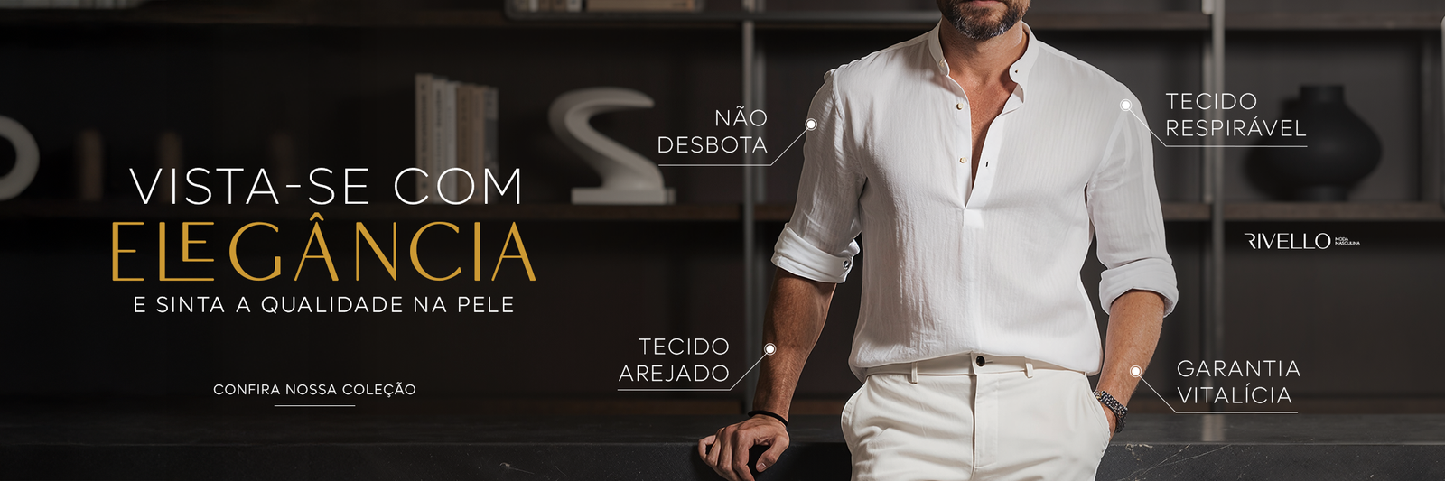 A Rivello cria moda atemporal com qualidade excepcional e design elegante, utilizando os mais nobres tecidos e técnicas de confecção para garantir longevidade e conforto. Vestir Rivello é investir em um estilo que celebra sua individualidade com a excelência que você merece.